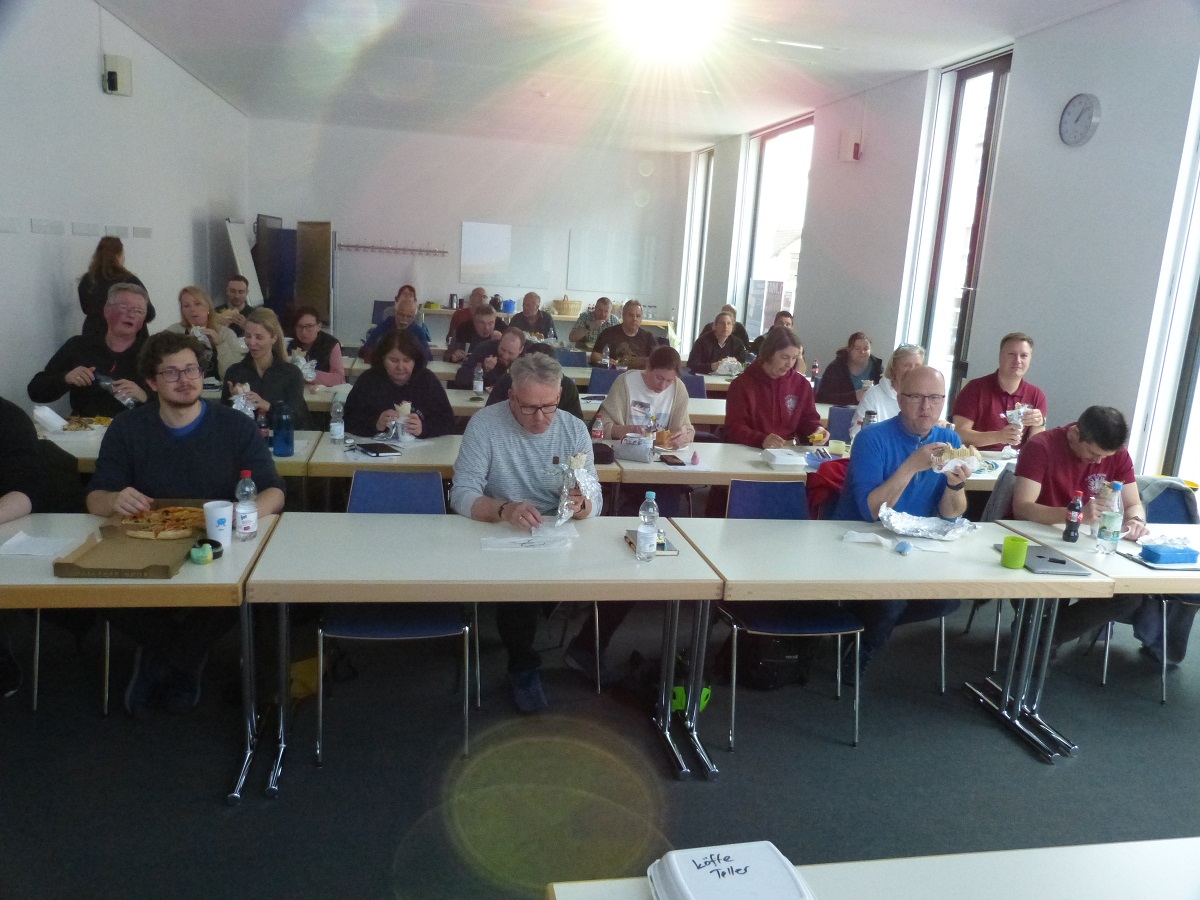 Für die Mittagspause war im Vorfeld bereits für das leibliche Wohl gesorgt worden. Alle Teilnehmenden und Mitwirkenden hatten mit der verbindlichen Teilnahme-Rückmeldung anhand einer übersandten Speisekarte ihre Wünsche geäußert. Die Lieferung durch „SARAY-Grill Ingelheim“ erfolgte pünktlich, war vollständig und hat allen geschmeckt.